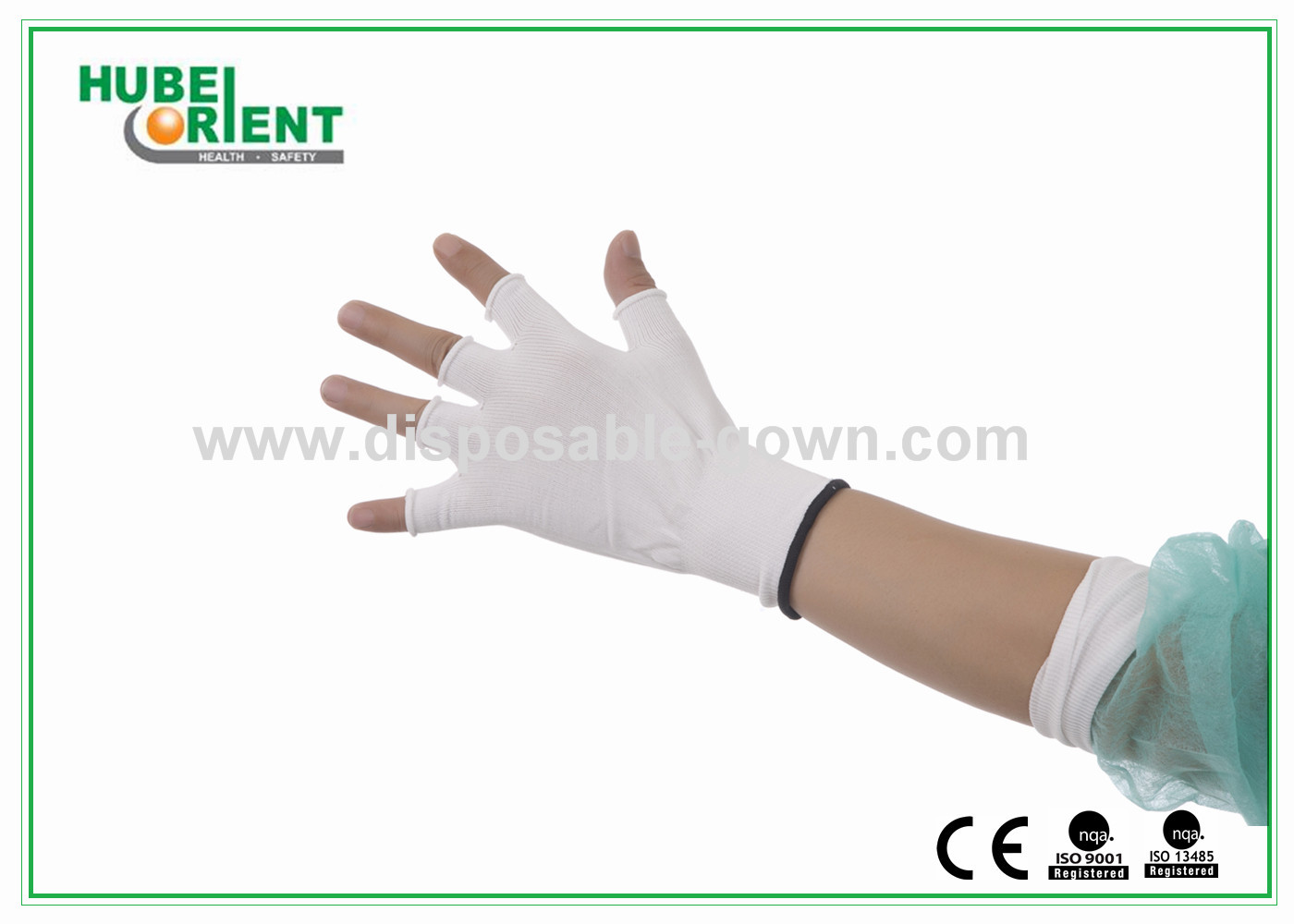 100٪ نایلون نرم یکبار مصرف نصف دستکش های انگشت رنگ سفید 165 گرم در متر مربع