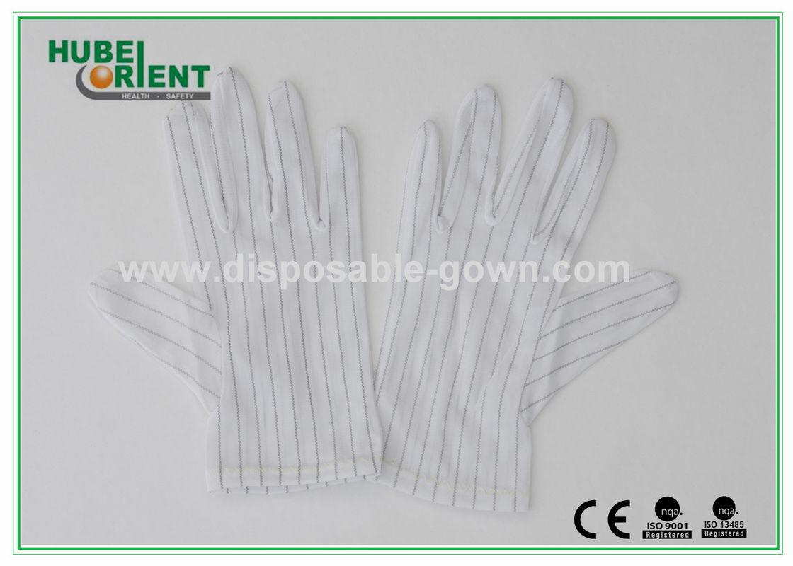 دستکش های سفید نیلونی ESD با نوار رسانا برای کارخانه الکترونیک