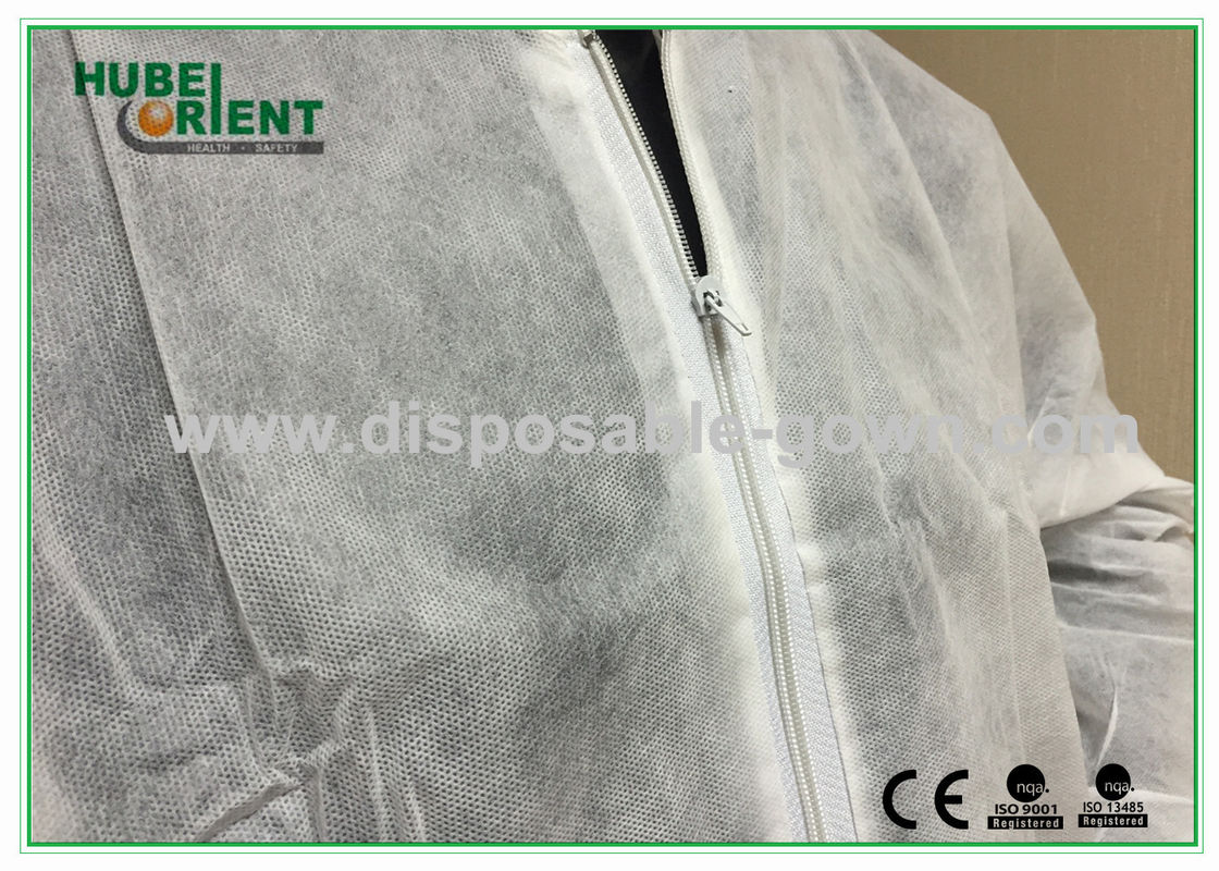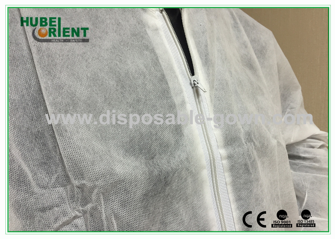 زپ بسته شدن استفاده ی یکبار مصرفی پزشکی ژاکت آزمایشگاهی / ژاکت بازدید کننده در آزمایشگاه
