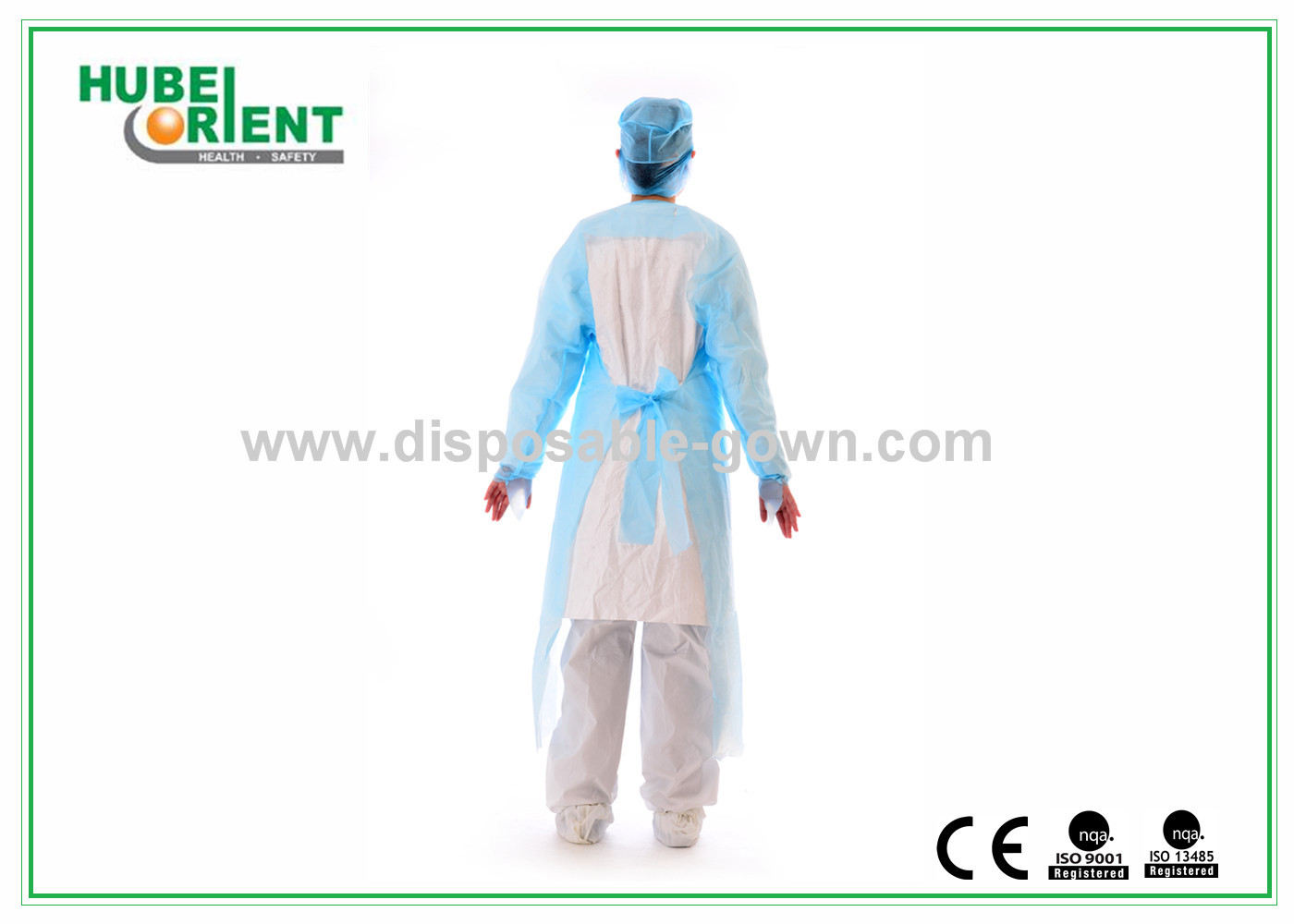 | نام تجاری: Hubei Orient یا OEM | نام ماده: لباس محافظ CPE یکبار مصرف |